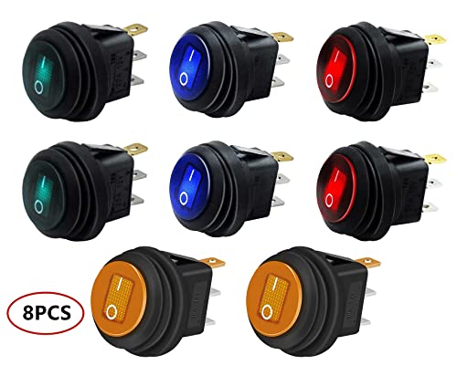 HUAZIZ 8 Pezzi Interruttore a Levetta Impermeabile 20A 12V DC SPST ON/OFF 3 Pin 2 Posizioni Rotondo Interruttore a Bilanciere con Luce a LED, per Auto Barca Camion Elettrodomestici