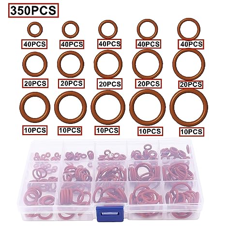 HUAZIZ 350 Pezzi 15 Misure Rosso O-ring Assortimento Kit, O-ring Silicone Guarnizioni di Tenuta, per Aria Condizionata, Automobile, Impianti Idraulici
