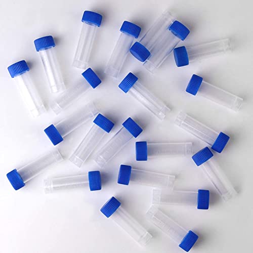 HUAZIZ 40 Pezzi 5 Ml Provette Graduate da aboratorio Provette in Plastica Trasparente con Tappo blu e Contrassegni Graduati
