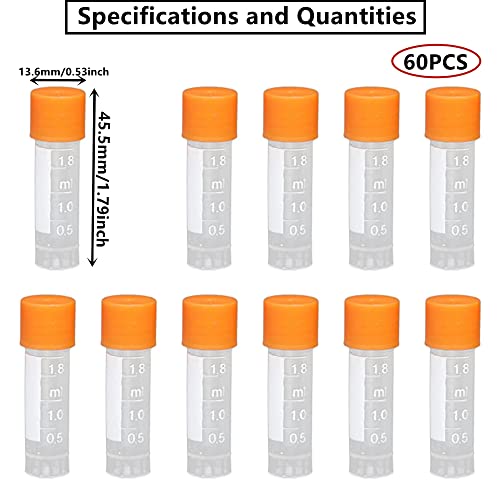 HUAZIZ 60 Pezzi Provette Graduate da 1.8Ml Laboratorio Provette in Plastica Trasparente 5ML con Tappo Arancione e Contrassegni Graduati,Laboratorio Provette in Plastica
