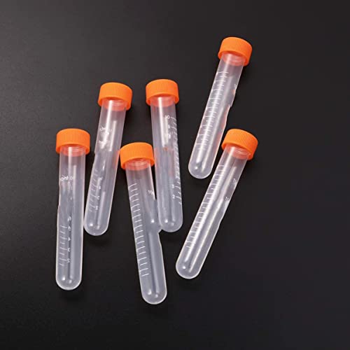 HUAZIZ 20 Pezzi Provette Graduate da 10 ml Laboratorio Provette in Plastica Trasparente 10ML con Tappo Arancione e Contrassegni Graduati