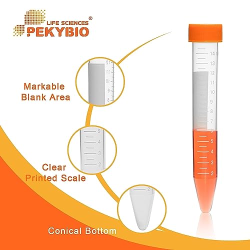 Scala Trasparente: La provetta per microcentrifuga è incisa con una scala chiara all'esterno, incisa con i numeri da 1 a 15 e la capacità totale è di 15 ml. La scala della provetta da centrifuga è stampata con inchiostro bianco di facile lettura, comodo per la misurazione sperimentale.