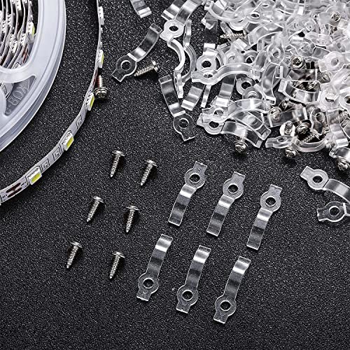HUAZIZ 100 Pezzi Clip Strisce LED Clip di Fissaggio del Silicone Clip di Fissaggio con Viti Fissaggio Strisce per LED 10mm(Trasparente)