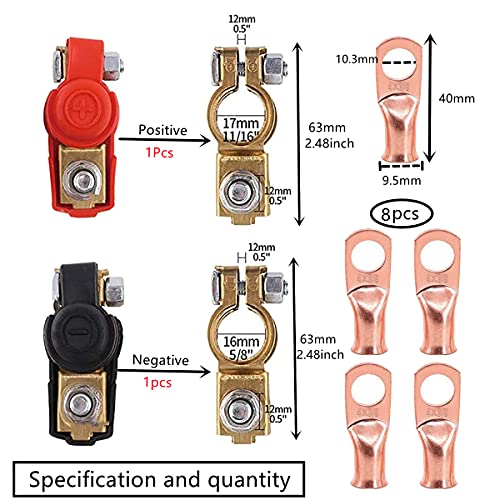HUAZIZ 2 Pezzi Terminali di Batteria Connettori,Morsetti Batteria a Sgancio Rapido, Battery Terminal, Connettori di Batteria (8 Anello in Rame) per Barca Camion Furgone Roulotte