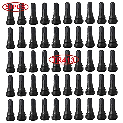 HUAZIZ 50 Pezzi TR413 Valvole in gomma Valvola per pneumatici, Valvole in gomma Snap-in, Gomma Pneumatici Valvola nero, Valvola in gomma per cerchioni,Tappo stelo valvola pneumatico, per Auto, Moto