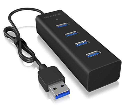 ICY BOX hub1409 della U3 4 Prese USB Hub di connessione (Type A) con 4 X USB 3.0 (Type A) Porte, Cavo Integrato (40 cm), Alluminio, Nero