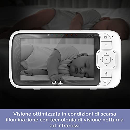Hubble Connected Nursery Pal Cloud Baby Monitor Video e Audio, Schermo da 5 pollici, luce notturna, visione notturna, conversazione bidirezionale, sensore di temperatura ambiente e app per smartphone