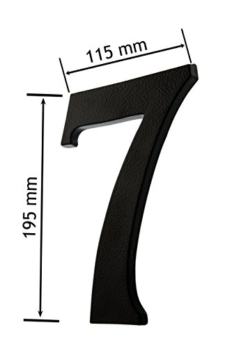 HUBER numero civico 7 in alluminio 20 cm I numeri civici per casa & porta I Numero civico XL I targhette con numero civico in nobile design nero 3D, verniciato a polvere
