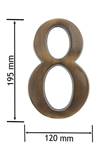 HUBER numero civico 8 in ottone 20 cm I numeri civici per casa & porta I numero civico XL I numero civico segni in ottone nobile 3D design, numero civico