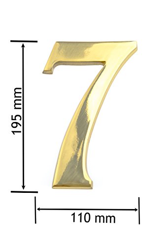 HUBER numero civico 7 in ottone 20 cm I numeri civici per casa e porta I numero civico XL I targhette con numero civico in ottone nobile design 3D, lucido