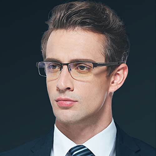【Lettura da uomo di design】 Utilizziamo aste in metallo di silicone di alta qualità e lenti in acrilico e naselli in silicone,resistente e non si sbiadirà. Classico design a mezza montatura rettangolare, perfetto per gli uomini. Gli occhiali da lettura con montatura in metallo con cerniere a molla garantiscono una vestibilità comoda e si adattano alla maggior parte delle forme del viso e del naso senza pizzicare il viso.
