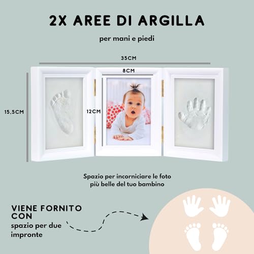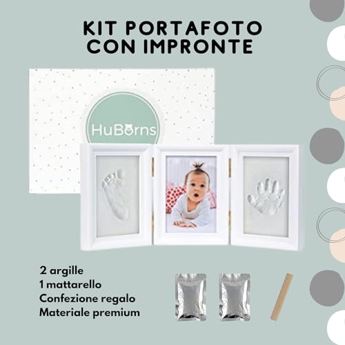 HuBorns - Cornice Impronta Mani e Piedi Neonati - Kit Quadretto Impronte Neonato di Qualità con Calco Senza Crepe - Quadro Ideale per Regalo Originale Neonato