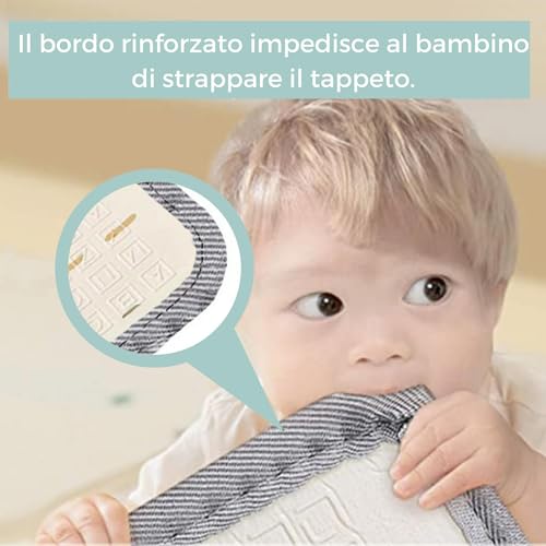 ✅【 PERFETTO SPESSORE ANTICADUTA 】 Con il nostro tappeto tummy time neonati non dovrai preoccuparti della caduta dei più piccoli, poiché il suo spessore reale di 1 cm attutisce eventuali cadute e previene forti colpi. Il tappeto morbido bambini 200 x 180 cm ha una dimensione ampia perfetta per giocare per ore.