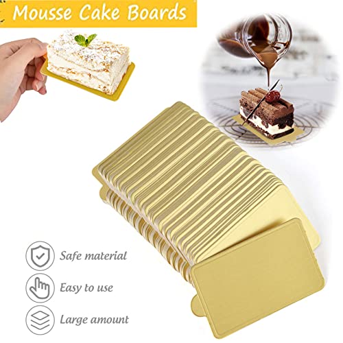 Hudiepan 100 Pezzi Mini Cake Boards, Cupcake Dessert Display Vassoio Cartone, Vassoio per Torte Oro, Rettangolo Greaseproof Cartone Cake Board per Display di Dessert, Matrimoni, Compleanni, Vacanze