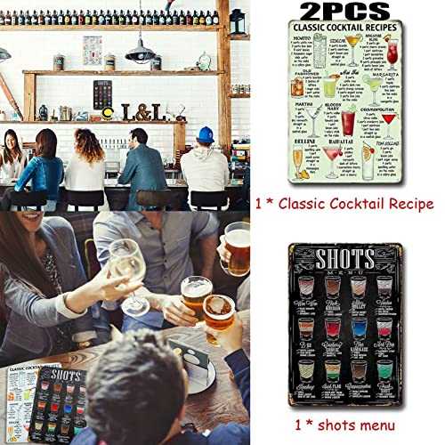 Hudiepan 2 Pezzi Cocktail Poster, Targa Metallo Vintage Cocktail, Targa Metallo Vintage, Metallo Vintage Wall Placca Poster, Cocktail Classico Ricetta Poster, per Casa Bar Ristorante Pub Giardino