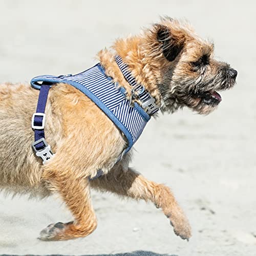 HUGO & HUDSON Collare per Cani in Nylon con Fibbia in di Sicurezza a sgancio rapido, Collare per Animali Imbottito Morbido - Navy a Righe - M