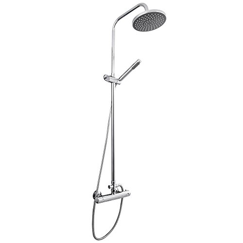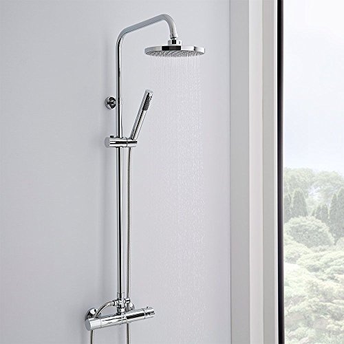 Hudson Reed - Colonna Doccia Termostatica con Miscelatore Termostatico (Ottone Cromato) - Soffione Circolare, Doccetta e Asta Regolabile - Anticalcare