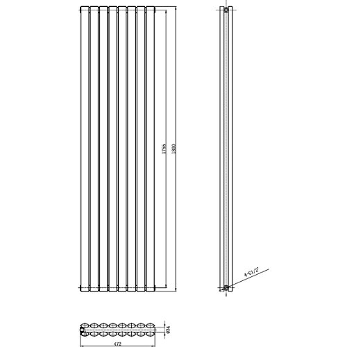 Hudson Reed HL326EU, Radiatore Verticale Doppio, 12 Collone Ovali, Bianco, 1351W, 1780x354 mm