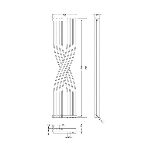 Hudson Reed, HLA94, Xcite radiatore di design, 1775 x 450 mm, nero, HLA94