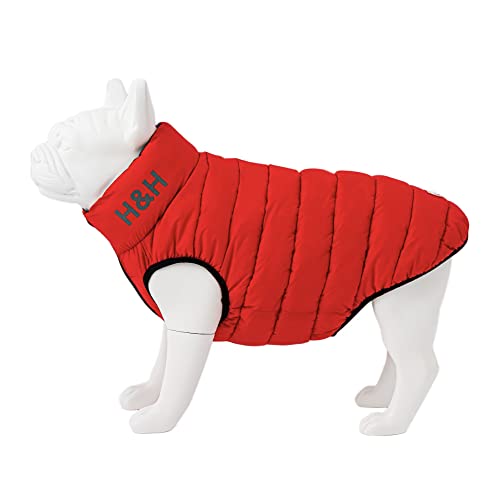 HUGO & HUDSON Piumino per Cani - Abbigliamento e Accessori per Cani Cappotto Reversibile Resistente all'Acqua con Foro di Fissaggio per Collare - Rosso e Blu Marino - S35