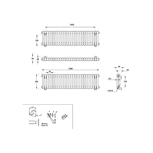 Hudson Reed Regent Radiatore Termoarredo di Design Orizzontale In Stile Ghisa - Termosifone Con Finitura Bianca - 2 x 26 Colonne - 827W - 300 x 1190 x 68mm - Riscaldamento ad Acqua Calda