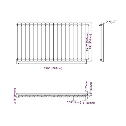 Dimensioni (Alt x Larg x Pro): 635 x 1000 x 56mm - Interasse (appross.): 1090mm