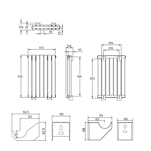 La confezione contiene tutti gli accessori di montaggio (tacchi, tasselli, valvola di spurgo e staffe di fissaggio). Le valvole del termoarredo non sono incluse.