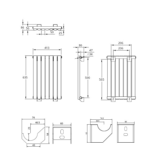 La confezione contiene tutti gli accessori di montaggio (tacchi, tasselli, valvola di spurgo e staffe di fissaggio). Le valvole del termoarredo non sono incluse.