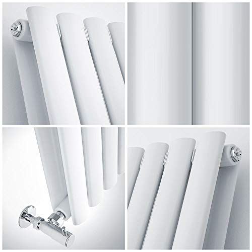 Hudson Reed Revive Radiatore Termoarredo Design Verticale Doppio in Acciaio Bianco - 1500 x 354mm - 1512 W - Colonne Ovali - Termosifone di Lusso - Riscaldamento ad Acqua