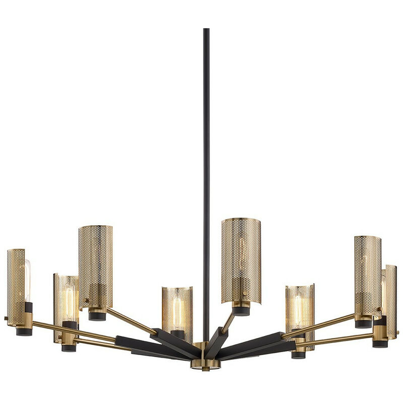 Pilsen Lampadario a 8 luci Carb nero con accenti nichel satinato, acciaio | Finitura: Carb Black W Satin Nick Accents | Materiale: ferro lavorato a mano | Grado di protezione IP: IP20 | Altezza: 38,7 cm | Altezza minima: 43,8 cm | Altezza massima: 135,3 cm | Diametro: 101,6 cm | Tipo di lampada: E27 | Lampadina inclusa: no | Dimmerabile: Sì - Sono necessarie lampadine dimmerabili | Peso: 2,49 kg
