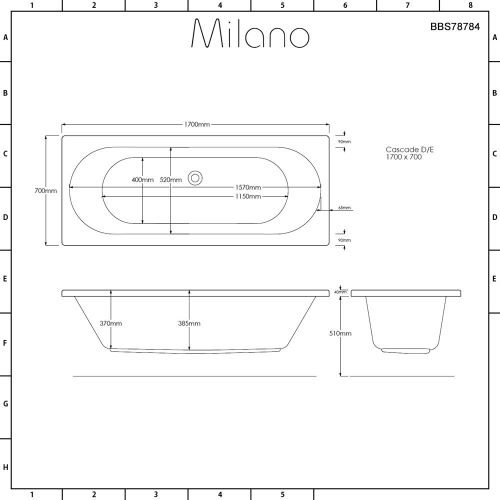 Hudson Reed Vasca da Bagno Rettangolare da Parete - Acrilico Bianco - Design con Seduta Ovale - 1700 x 700 x 550mm