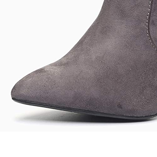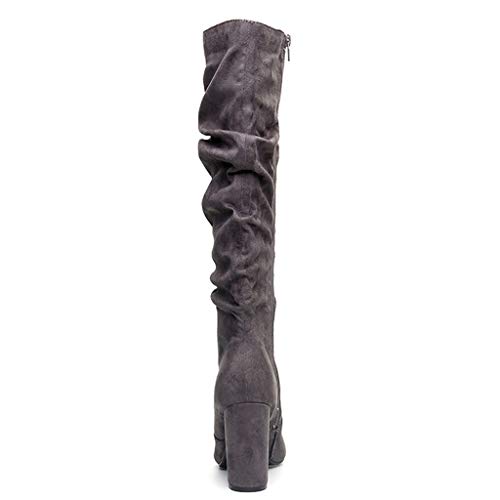 HUDUO Stivali Lunghi Pieghettati da Donna Stivali Alti in Pelle Scamosciata Stile Cowboy Occidentale Stivali A Punta con Tacco Alto Stivali alla Moda con Cerniera Laterale Scarpe da Discoteca,Grey-36