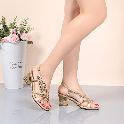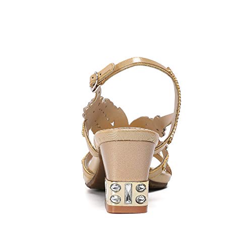 Huegu Sandali alla Moda con Strass Tacco Aperto da Donna Scarpe Comode Sera con Tacco Largo Sandali Eleganti con Cinturino alla Caviglia per Ragazze