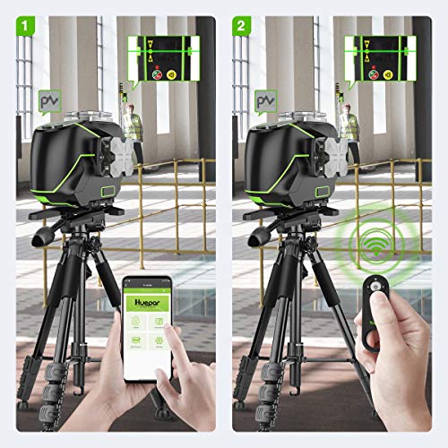 ✔️LCD DISPLAY&BLUETOOTH TECH: The laser level has LCD screen to easily get the status of the battery, angle, pendulum and pulse mode on the display. Bluetooth connectivity enables to control the setup of the laser from across the room with Huepar App on smart phone and remote control. The App and remote control can switch ON/OFF the laser lines and pulse mode, select the laser planes. Huepar App also provides out-of-level alarm. The laser tool can connect two Bluetooth devices simultaneously.
