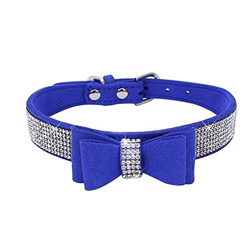 Huhuswwbin collare, collana strass collare in pelle scamosciata sintetica in pelle Bowknot cucciolo di cane gatto animale domestico Bling collana adatto per piccolo medio femmina cani gatti