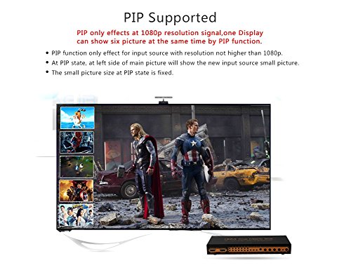 Supporto Funzione PIP PIP (solo effetti a 1080p): hanno un' immagine principale e cinque piccole immagini, si può fare interruttore di sorgenti di ingresso da premere il pulsante o telecomando. Piccole immagini sono mangimi vivi.