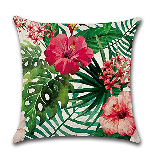 HuifengS - Set di 4 federe copricuscini in lino, motivo foresta pluviale tropicale, piante, botanica, decorative per divani, letti, sedie, 45,7 x 45,7 cm Zt018