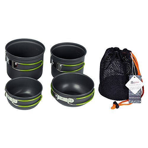 Huijukon - Set di pentole da campeggio da 4 pezzi, include pentole e padelle per 2-3 persone