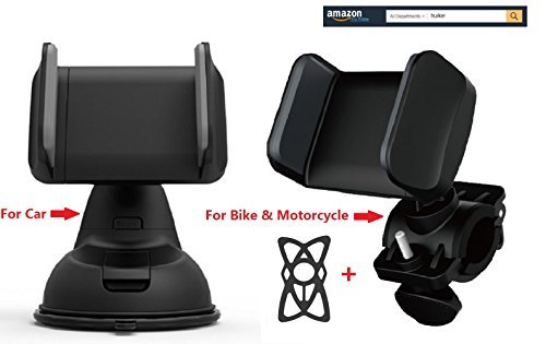 Huiker 3-in-1 Car Mount Bike Phone supporto con supporto per manubrio grip strap & parabrezza cruscotto supporto per bici ciclismo motociclismo e per auto per iPhone, smartphone e dispositivi GPS, Grey