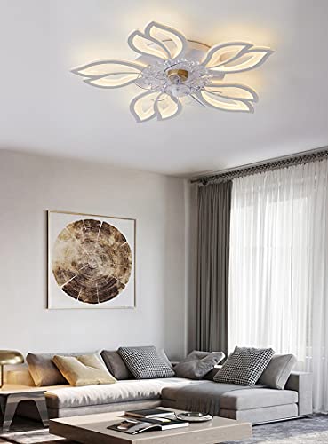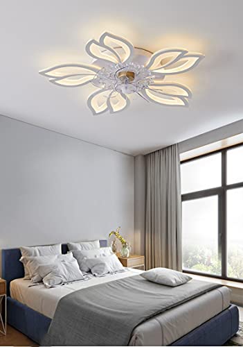 Huilefu Ventilatore da soffitto silenzioso con illuminazione Moderna plafoniera a LED, dimmerabile con ventilatore, ventilatore a forma di fiore con telecomando Plafoniera bianca, 60cm, 36W (C)