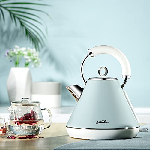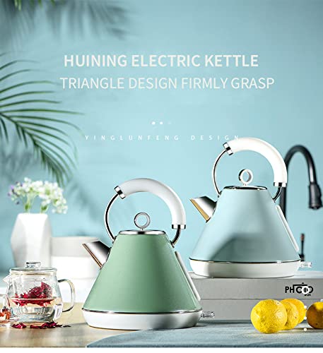 HUINING Bollitore elettrico, bollitore elettrico in acciaio inossidabile, 1,8L, 1800 w, spegnimento automatico, bollitura rapida, adatto a qualsiasi design di cucina retrò (Mint Green)