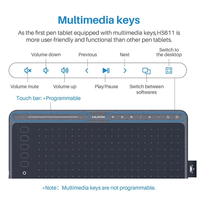 HUION HS611 Graphic Tablet Digital Drawing Tablet 266PPS with Express and Multimedia Keys Three Colors For PC Android