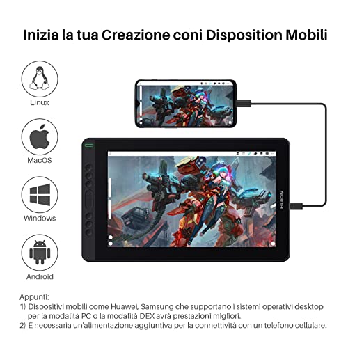 【Disegna su Android】 Lo schermo Kamvas a 13 pin può essere utilizzato con Mac e PC. Supporta anche la connessione a telefoni cellulari o tablet Android utilizzando un cavo di tipo C completamente attrezzato (non incluso). Se il computer non è disponibile, puoi portarlo ovunque per salvare la tua ispirazione. Nota: i dispositivi Android devono supportare il sistema operativo desktop per PC o la modalità DEX.