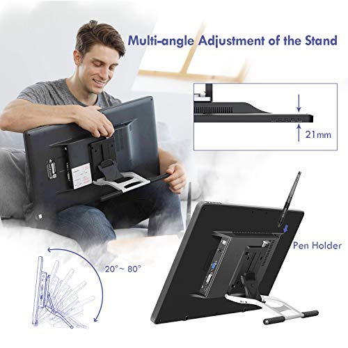 Huion Kamvas pro 22 Tavoletta Grafica con Schermo con Gamma Colori 100% sRGB, 20 Tasti di Stampa Personalizzati e 2 Touch Bar, Monitor per Disegni Grafici con Funzione di Inclinazione, 266 PPS