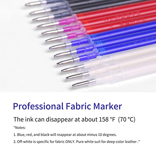 Inchiostro cancellabile a caldo, stirato i segni, scomparirà, nessuna traccia, nessun residuo lasciato sul tessuto, lascia i segni visibili solo quando serve (Blu, rosso e nero riappariranno a circa meno 10 gradi).