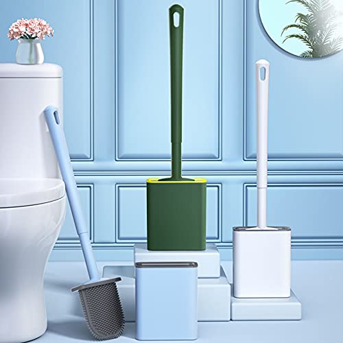 HUIXIZS Spazzolino per la pulizia della toilette e kit staffa a parete,scopino in silicone per la pulizia profonda per il bagno,base per antigoccia,facile da pulire gli angoli della toilette (blu)
