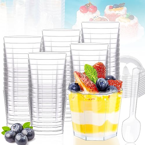 【AMPIA APPLICAZIONE】 Queste coppette da dessert in plastica sono molto adatte per l'uso all'interno di riunioni di famiglia, feste di compleanno, feste di dessert, eventi di catering, festival, matrimoni e molte altre occasioni, la scelta migliore per servire dessert.