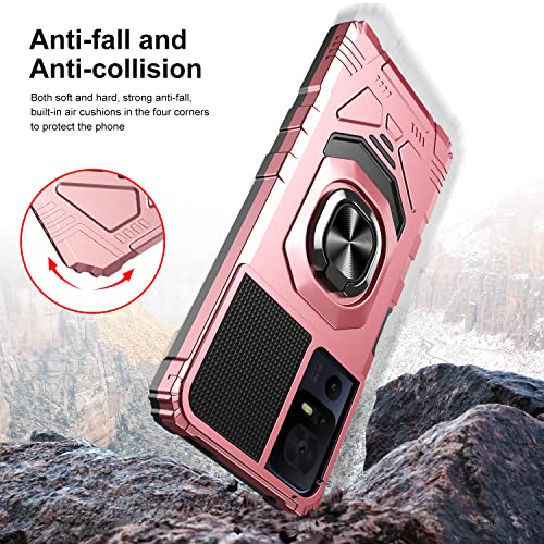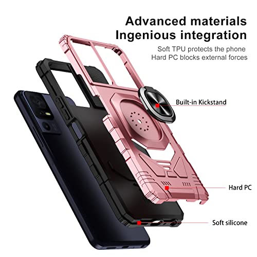 HuiYouMY SCDMY Trasparente Cover per TCL 40 SE (6.75") + Roseglod Armatura Custodia + [2 Pezzi] Vetro Temperato, Supporto Girevole a 360 Gradi Cover TPU e PC materiale Anticaduta Case