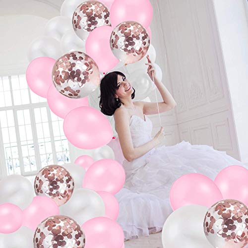 20 Palloncino rosa + 20 Palloncino bianco + 10 Palloncino di coriandoli oro rosa + 1 Annodatore di palloncini