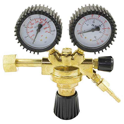 HUKOER Regolatore di gas, argon e anidride carbonica Riduttore di pressione universale con manometro, superficie in ottone, adatto a tutti i gas standard comuni Argon / CO2 / Gas inerte